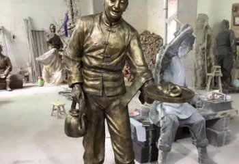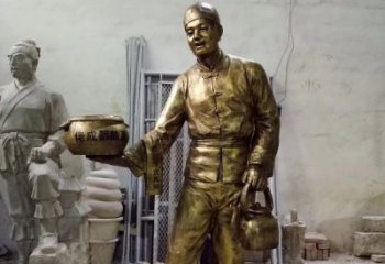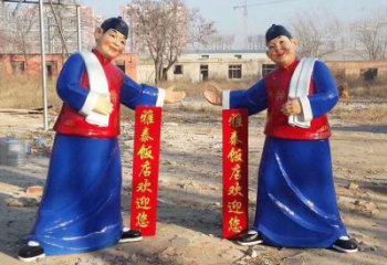 店小二傳承千年文化,人物銅雕映照古老傳說